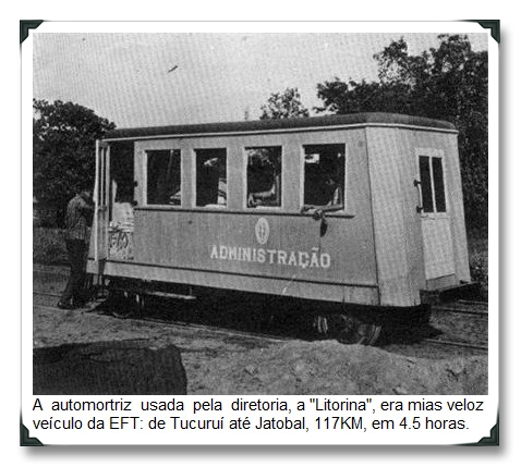 No final dos anos 50 a Estrada de Ferro Tocantins obteve duas automotrizes com as quais realizava transporte de passageiros entre Tucuruí e Jatobal, em 4 horas e meia. Anteriormente, os passageiros eram transportados nos próprios vagões de carga.